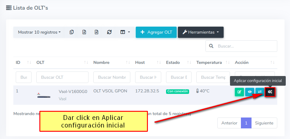 Después de aplicar las configuraciones iniciales, puede demorar entre 10-20 minutos en verse reflejados en su OLT.