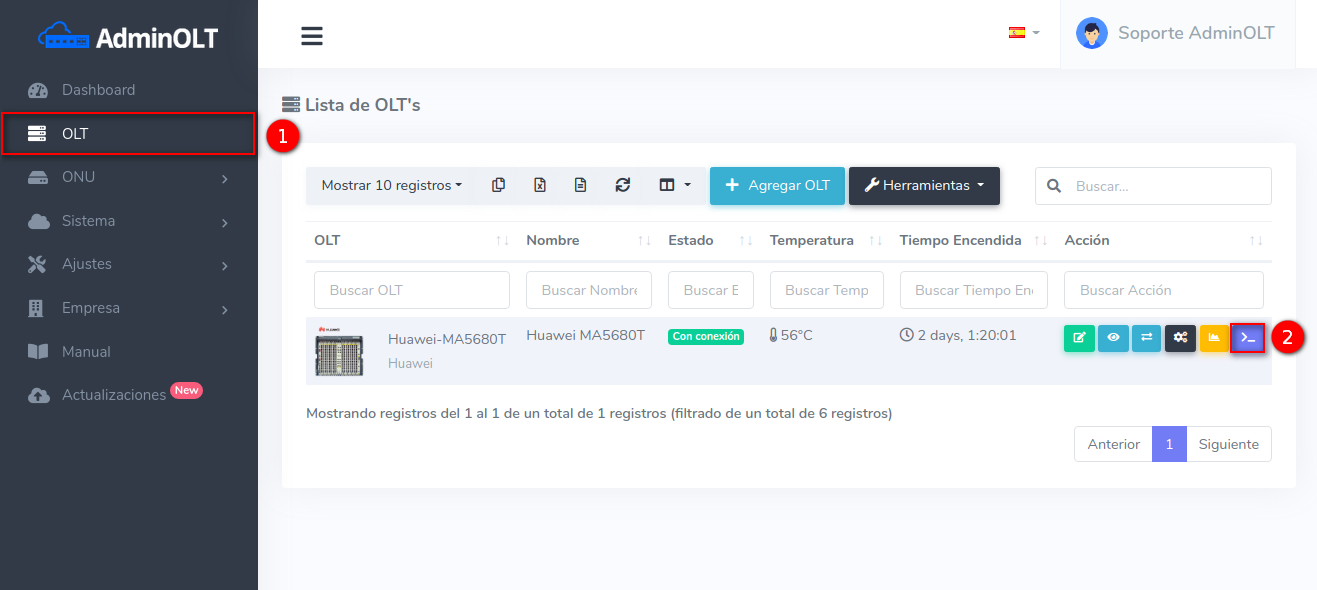AdminOLT ha integrado una herramienta que nos ayuda a conectarnos de forma remota a nuestra OLT desde el mismo sistema por medio del puerto SSH de nuestra OLT, para esto es importante que tengamos conexión por dicho puerto.