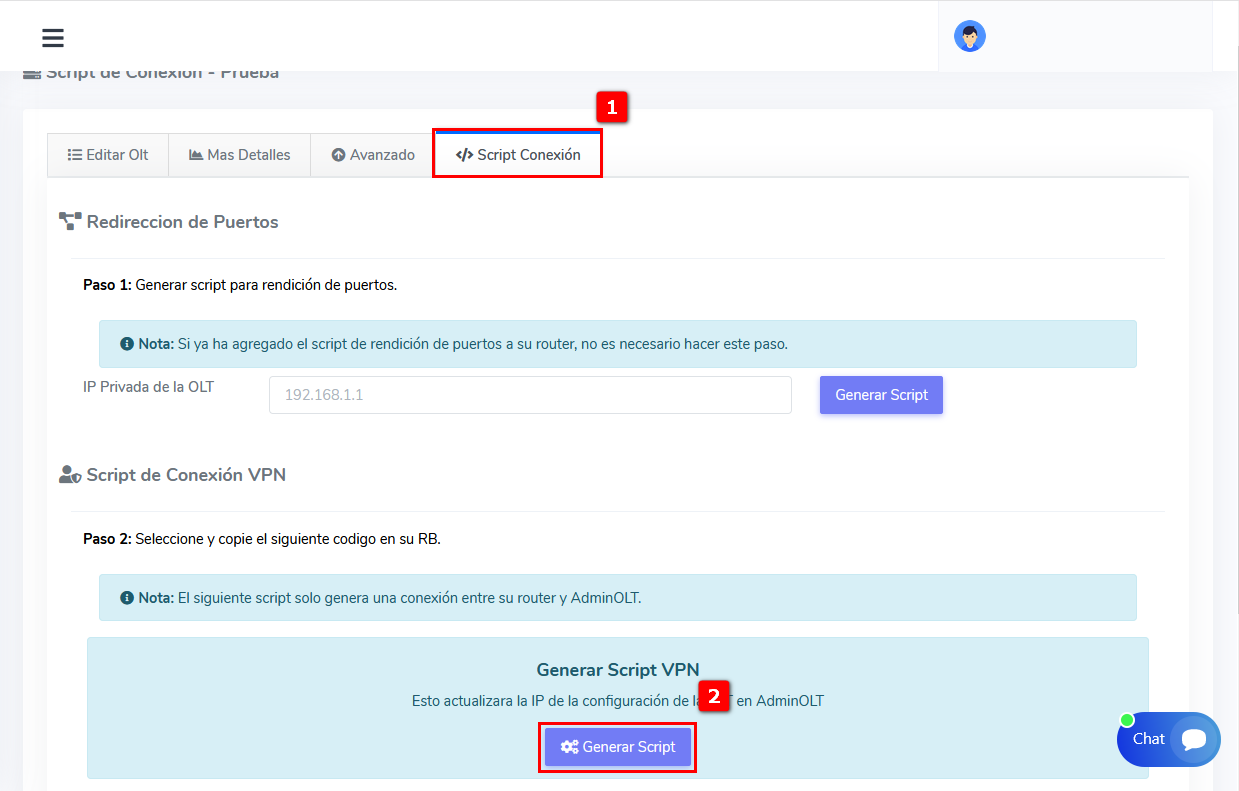 2Una vez aquí nos dirigimos a la pestaña de script de conexión y le damos en generar en script.