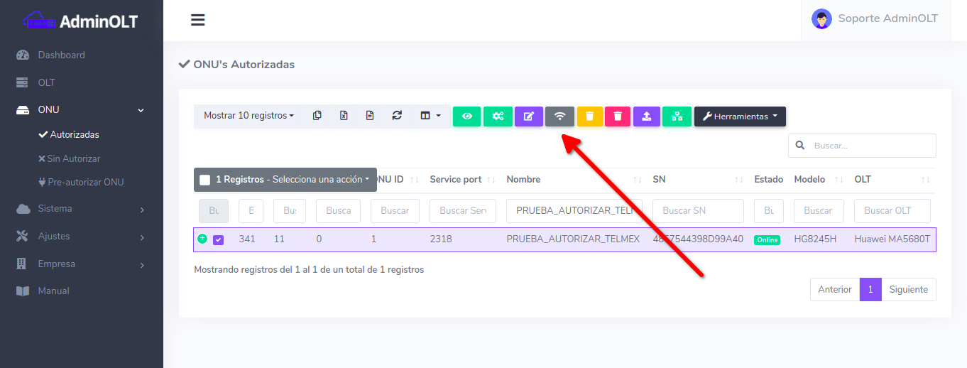 Pasos para autorizar onus utilizando configuración avanzada