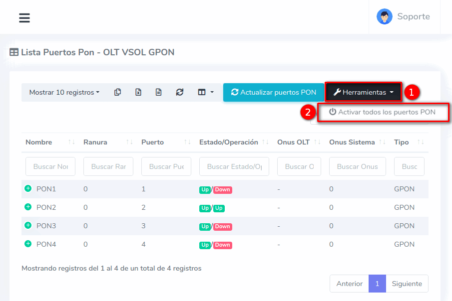 2 Estando en esta vista seleccionamos la opción Activar todos los puertos PON.