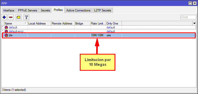 4 Opcional: Podemos limitar la velocidad desde Mikrotik por medio de un Profile