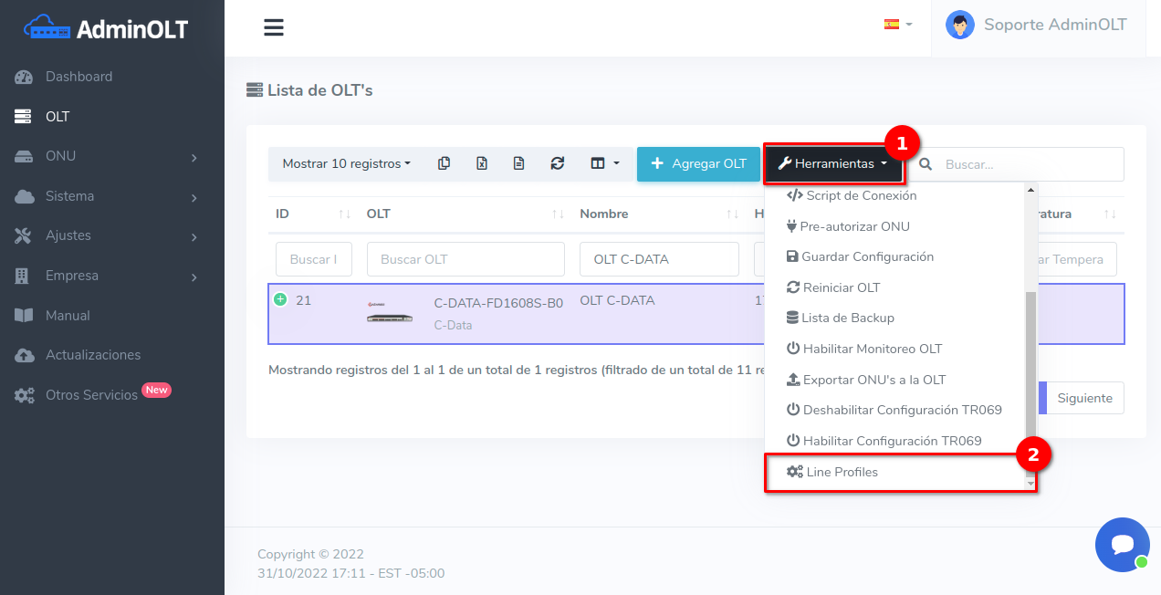AdminOLT ha integrado una característica para crear configuraciones avanzadas de perfiles de línea, para que los usuarios puedan autorizar sus onus utilizando configuraciones personalizadas y no de la manera predeterminada realizada por AdminOLT.