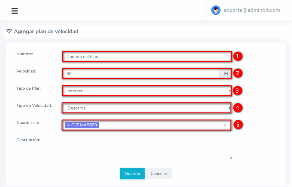 4 Una vez hayamos guardado la información AdminOLT se conectara con la OLT y agregara el Plan de Velocidad