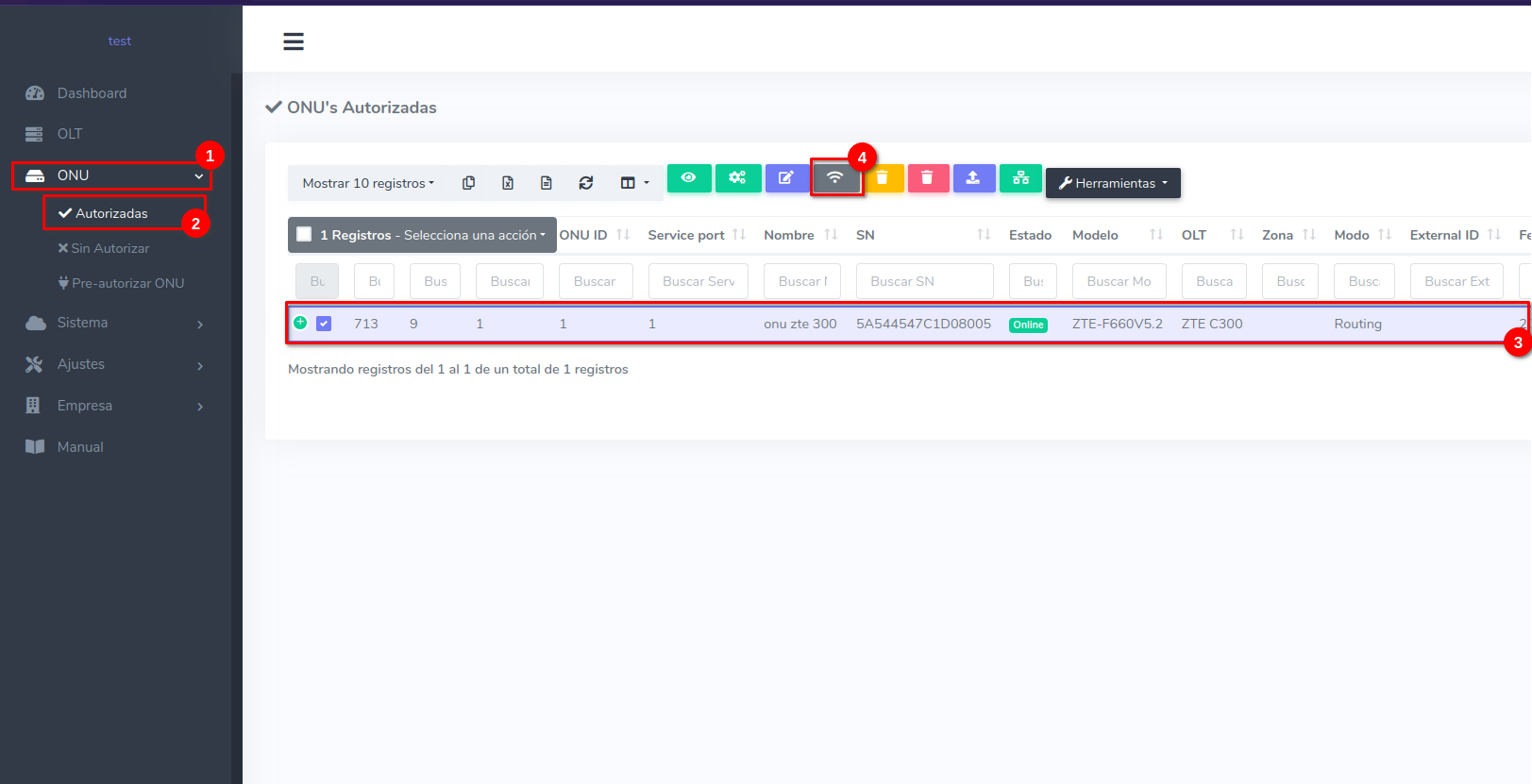 1Dirijase a la sección de ONU > Autorizadas > Editar Plan de Velocidad
