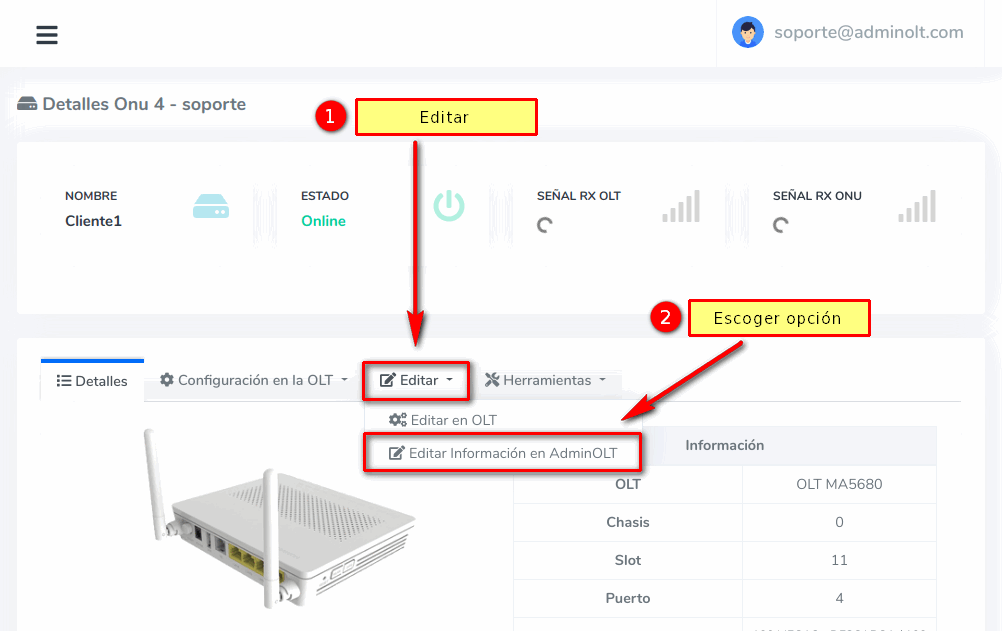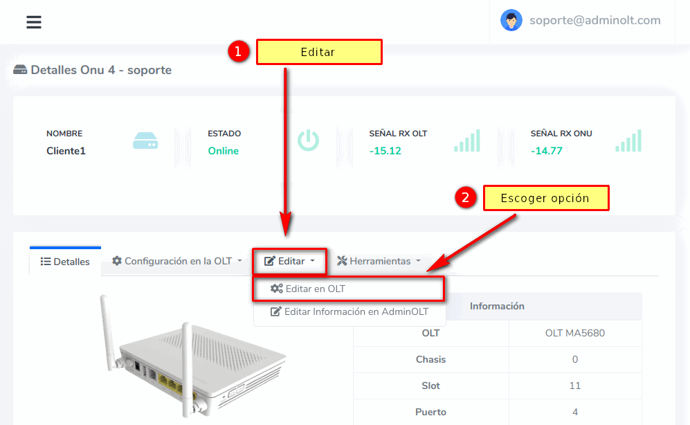 - Editar ONU en AdminOLT desde Detalles de ONU
