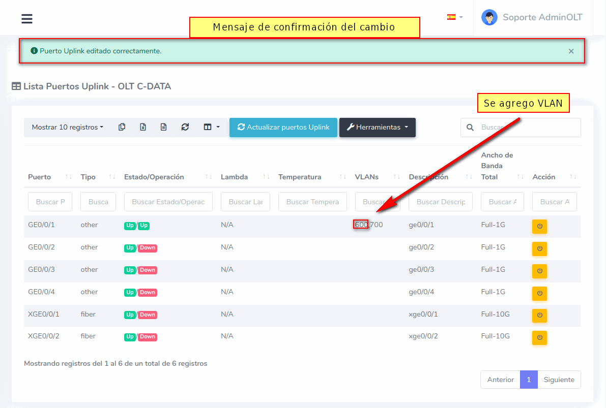 Habilitar puerto UpLink C-Data