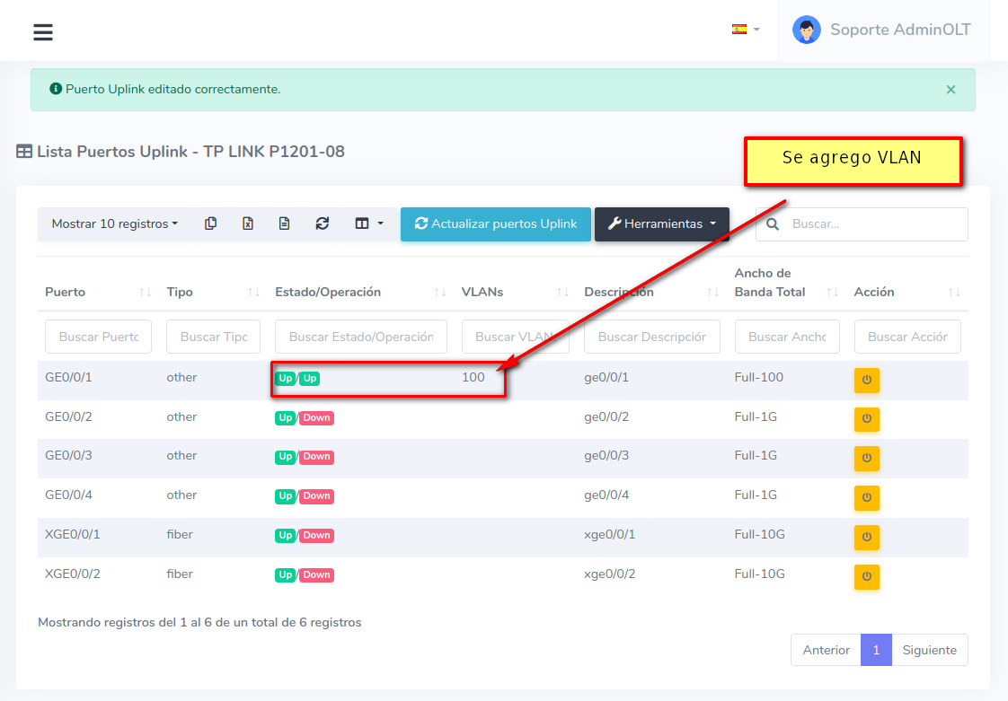 1 En la Lista OLT's seleccionamos el equipo con el que trabajaremos para después ir a Puertos Uplink, que se encuentra en el botón con la leyenda Herramientas.
